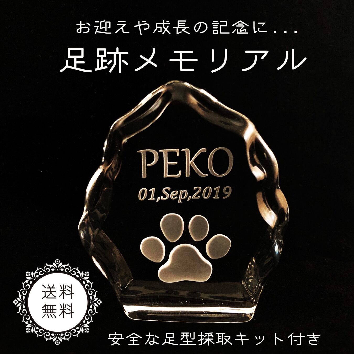 足跡メモリアル クリスタル ガラスブロック ペットメモリアル