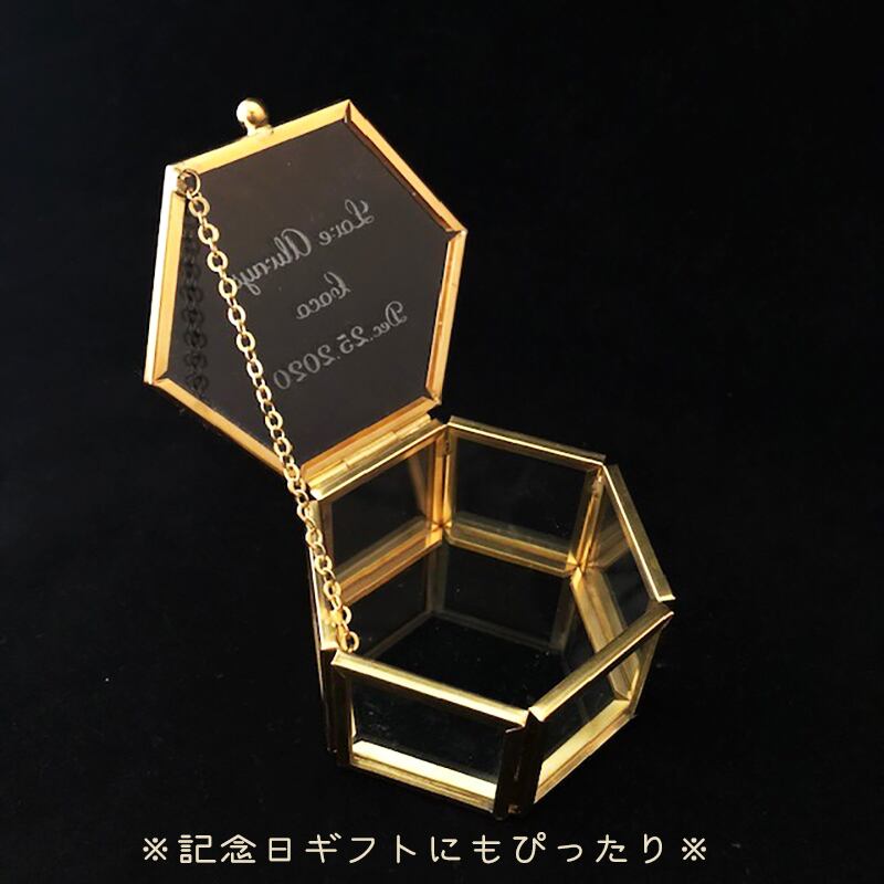 メッセージ+名前入りのガラス製ジュエリーボックス。