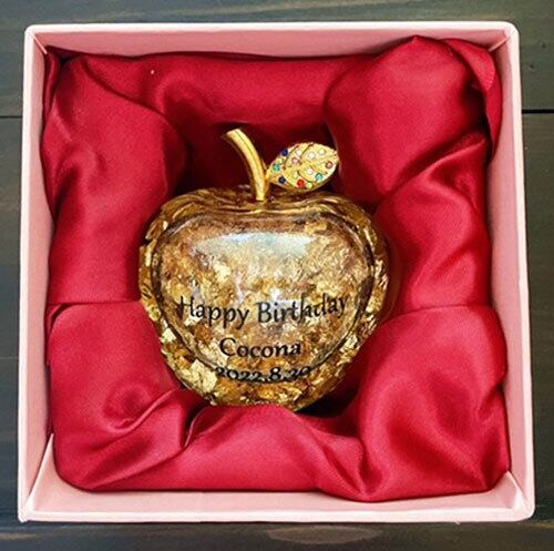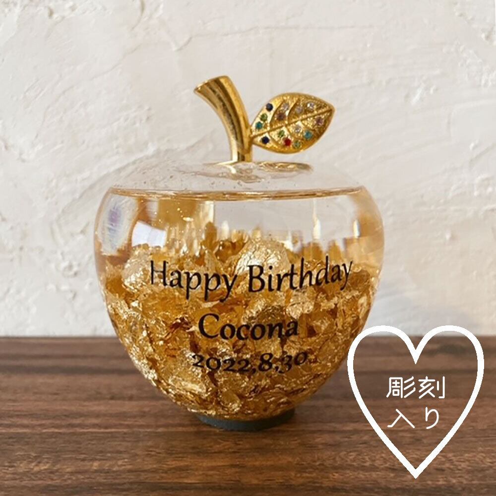 彫刻入り 幸運のりんご ガラス りんご オブジェ 金運 幸運 風水